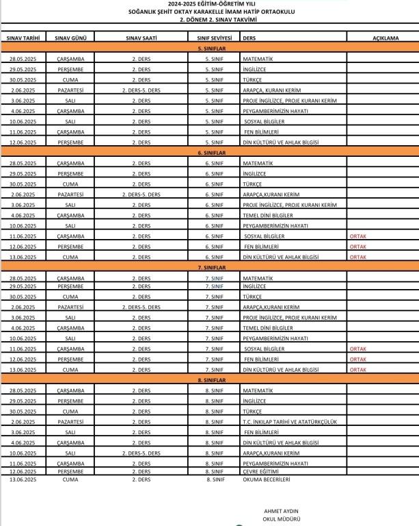 2. Dönem 2. Sınav Takvimi